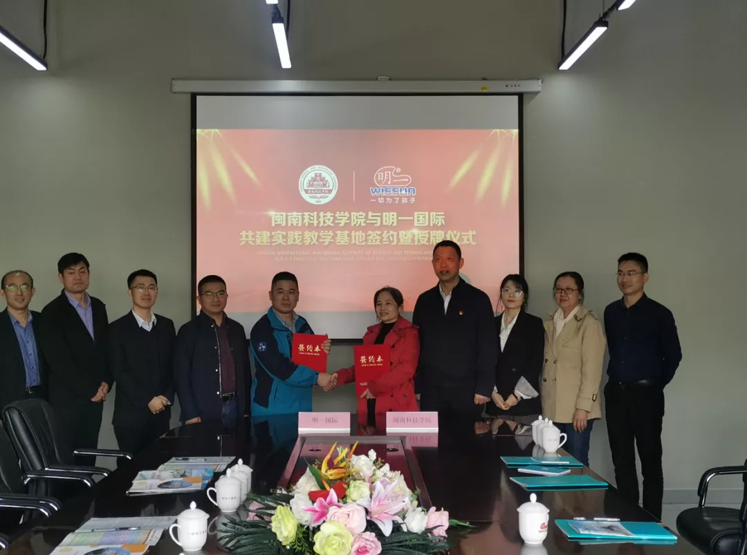 4月9日上午,我校与明一国际营养品集团有限公司举行实践教学基地共建签约仪式,明一国际生产总裁吴必武、集团人力资源总监陈端昌、技术总工程师刘洪涛等,我校副校长吴勇、教务处负责人、生命科学与化学学院负责人等出席签约仪式,并参加座谈。