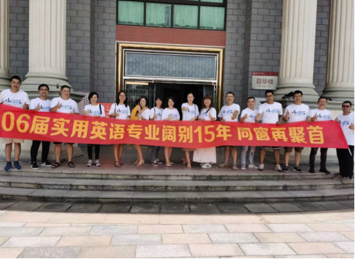 7月17日,我校2006届实用英语专业校友重返母校举行聚会,共庆毕业十五周年,追忆同窗旧事,畅叙师生情谊。校党委副书记林树生、原专业辅导员刘键出席活动。