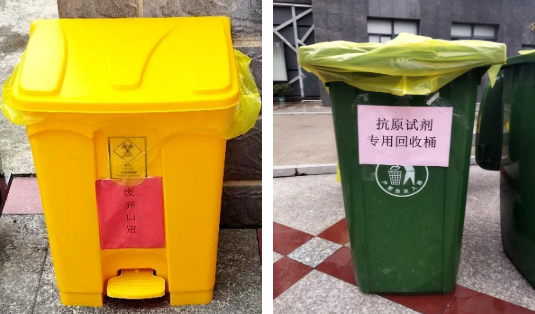 设立废弃口罩专用垃圾桶和抗原试剂专用回收桶