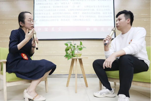 第二阶段的比赛分为微党课和谈心谈话两个环节。在微党课环节中,参赛选手围绕学习习近平新时代中国特色社会主义思想和党的二十大精神,结合时事热点和党务工作实际选定不同主题,从微中见大、微中见实,解读宣传党的先进理论、讲党规党史、说身边榜样,以朴实的语言、饱满的精神状态讲述了一堂堂生动而深刻的党课,引发现场观众共情共鸣。