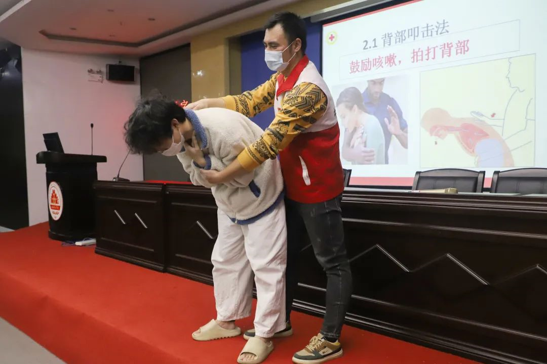 培训会上,南安市红十字应急救护培训中心老师们采用理论讲解和实操演示相结合的方式,借助PPT课件为学员们讲解了心肺复苏理论、AED自动体外除颤仪的使用方法、气道异物梗阻急救、创伤救护常见意外伤害处理等急救知识,并结合实操内容对学员进行分组练习指导与考核。