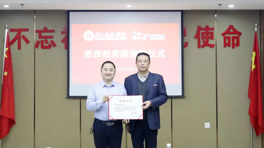 “百校千屏”思政教育屏捐赠活动由福建创智联盟数字教育科技有限公司联合福建富民云咖集团共同发起,分别提供设备和耗材,福建创智联盟数字教育科技有限公司是海峡出版发行集团旗下全资子公司。此次捐赠的思政教育屏将服务于全校师生,开辟了校内的星空在线官网教育新阵地。校企双方共建实践教学基地,将积极打造“党建+思政+产教融合+平台”模式,整合校企资源,共建产学研合作。