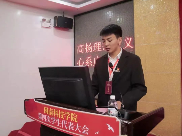 本次学代会的召开收到了各兄弟院校的贺信,泉州职业技术大学学生会执行主席陈彦同学代表各兄弟院校学生会宣读贺信,向大会的召开表示热烈的祝贺。