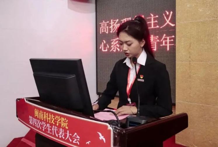 泉州团市委副书记傅漪代表共青团泉州市委、泉州市学联,向大会的召开致以热烈的祝贺。她向我校各级学生会提出三点期望:一要坚定信念,奋力开拓引领青年的思想阵地;二要主动作为,努力搭建服务青年的人才高地;三要强基固本,不断提升学生会组织的工作活力。她强调,我校要以本次大会的召开为新的起点,坚持以目标导向、问题导向持续深化学生会组织改革,以强化政治性、先进性、群众性为目标,明确学生会组织职能定位,坚持精简原则,努力建设青年满意社会认可的先进学生组织。